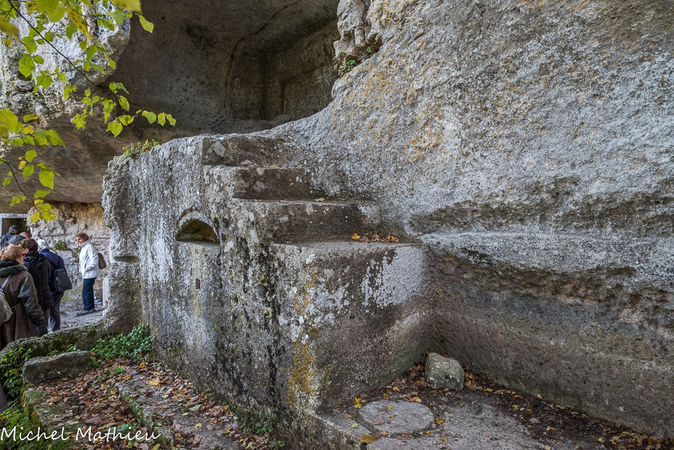 Prieuré de Carluc Emplacement de la chapelle Saint Pierre ? Escalier menant à une cellule monacale troglodytique.