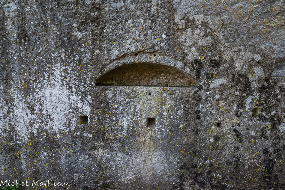 Prieuré de Carluc Emplacement de la chapelle Saint Pierre ? Emplacement de l'autel avec un arcosolium (tombe en forme de niche semi-circulaire avec un arc creusé au-dessus du sarcophage).