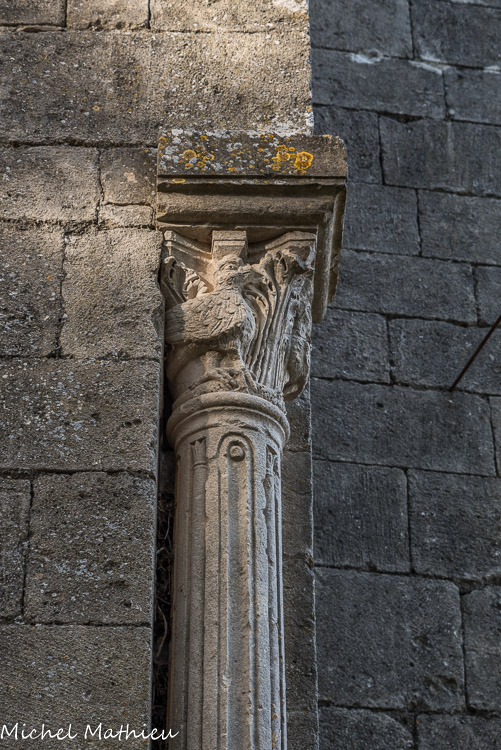 Chapiteau sculpté figurant des oiseaux.