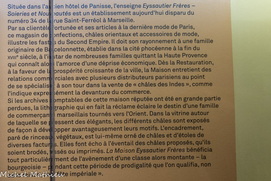 - la dernière thématique est consacrée aux « indiennes », textiles qui font partie intégrante des modes vestimentaires et décoratives du XVIIIe et du XIXe siècle à Marseille.