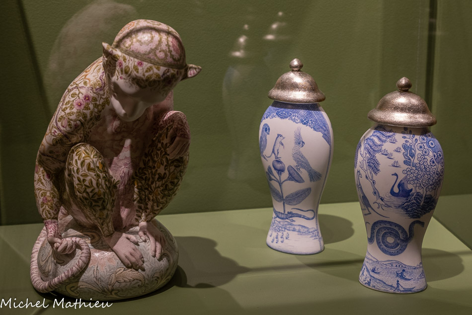 La statuette « Harold » rappelle les représentations des singes travestis en humains, à la mode aux XVIIe et XVIIIe siècles. Les peintures qui la recouvrent illustrent des épisodes du « Pèlerinage de Childe Harold » poème de Lord Byron, dont Harold, voyageur romantique, est le principal protagoniste. Figures mythologiques (Cupidon et Psyché) et philosophes (Rousseau et Pétrarque) côtoient Le voyageur au-dessus de la merde nuages de la célèbre toile de Caspar David Friedrich. Ces images sur le corps nu évoquent également l’art traditionnel du tatouage japonais (Irezumi).