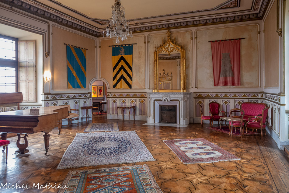Rue du Four avec la face nord du château avec l'échauguette, en arrière plan.