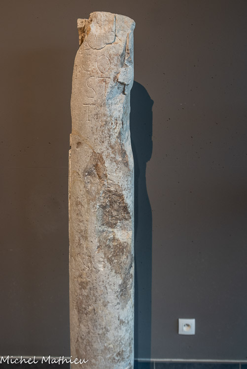 Milliaire des Combes, trouvé en 1861 dans la vallée du Frayol, probablement à son emplacement d’origine (actuelle route nationale 102, entre Le Teil et Alba-la-Romaine montée des Combes).