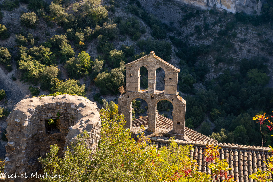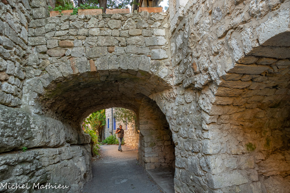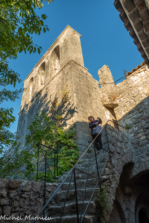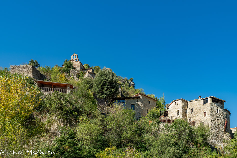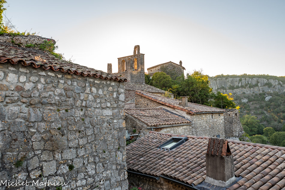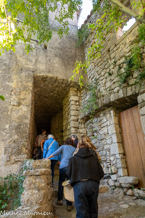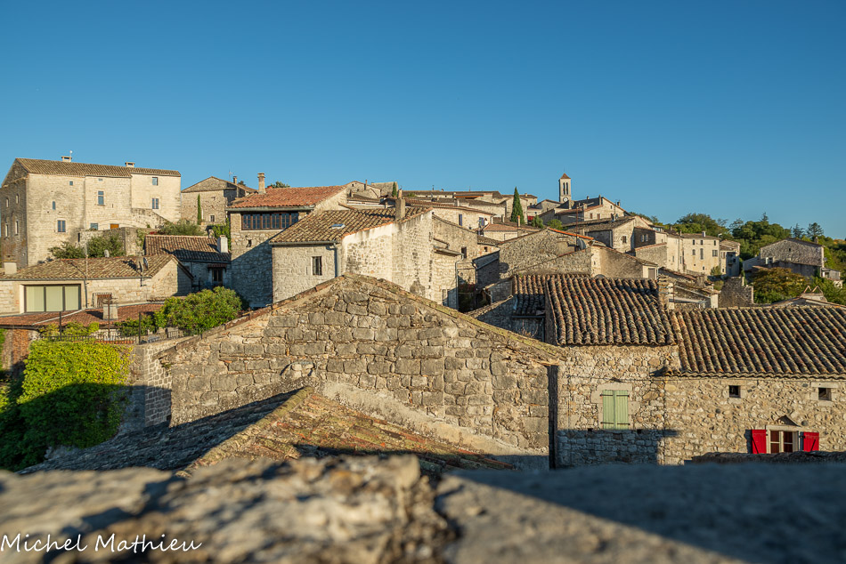 Le vieux village médiéval est accroché à sa colline couverte de garrigue, et la jolie chapelle St Barthélémy, tout comme la tour de l’ancien château, semble tenir délicatement en équilibre tout au-dessus des maisons.
