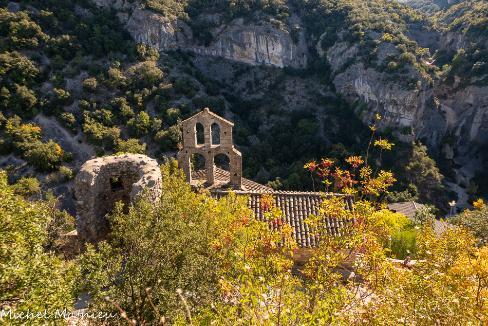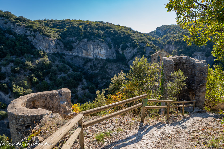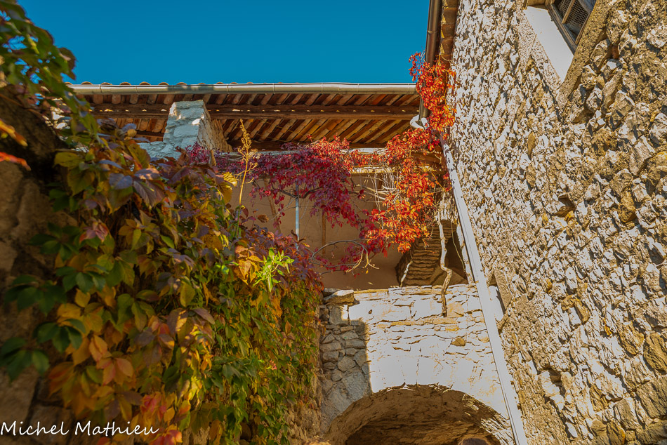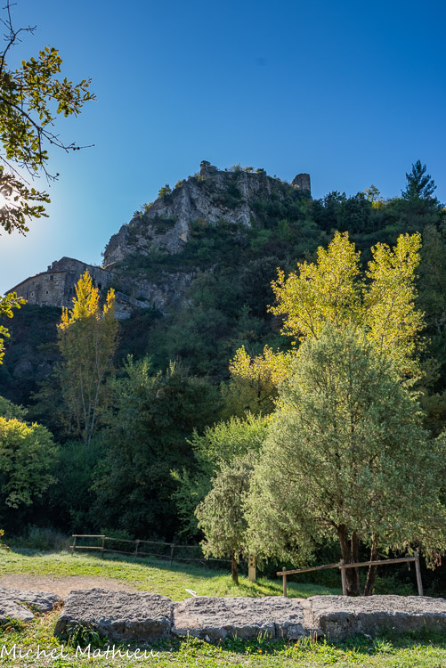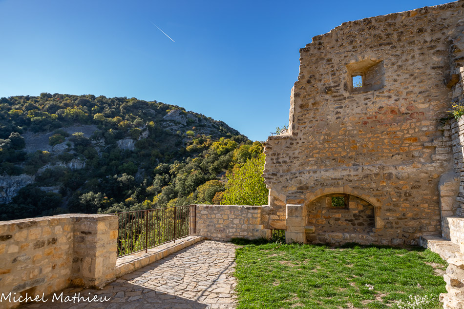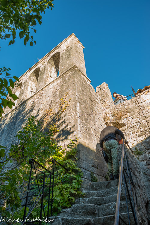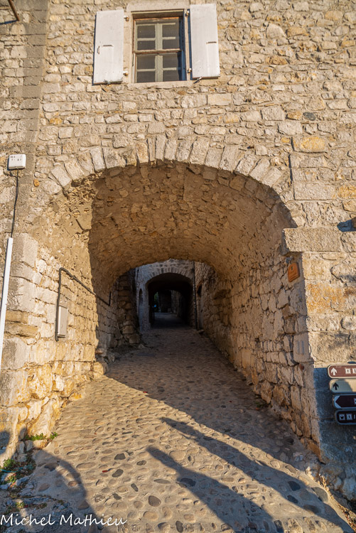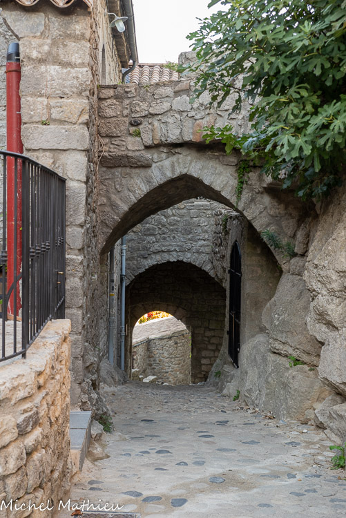 Le vieux village médiéval est accroché à sa colline couverte de garrigue, et la jolie chapelle St Barthélémy, tout comme la tour de l’ancien château, semble tenir délicatement en équilibre tout au-dessus des maisons.