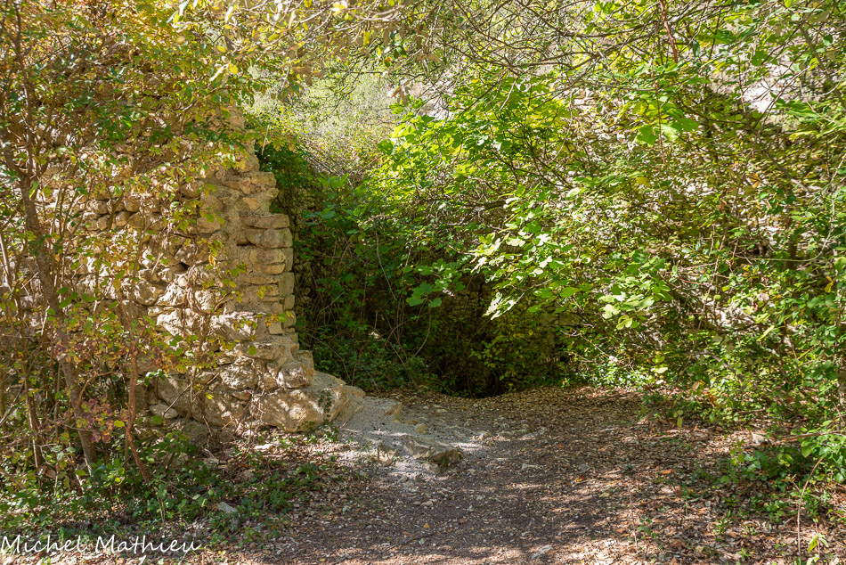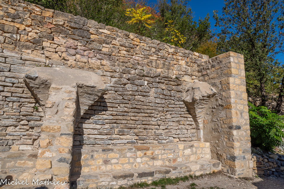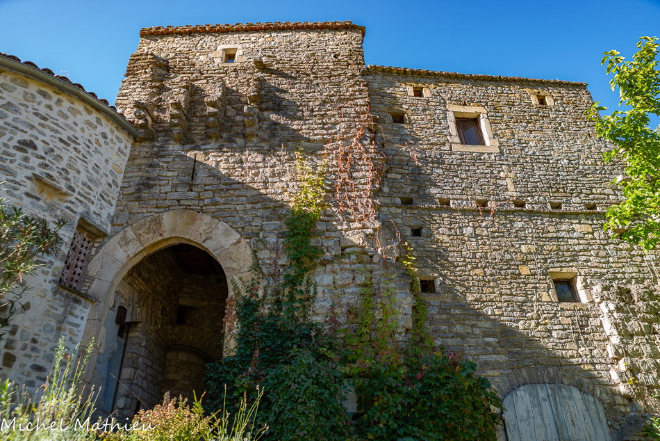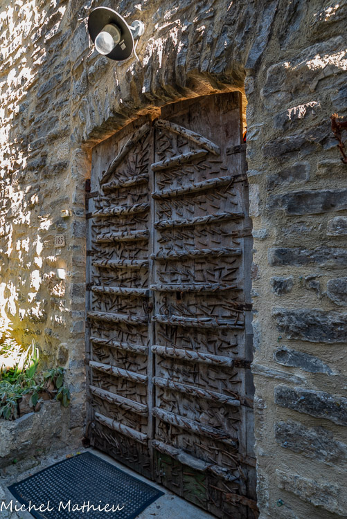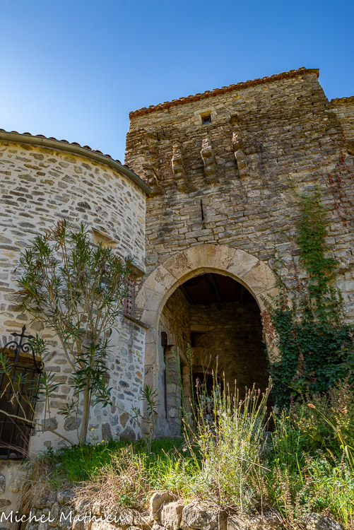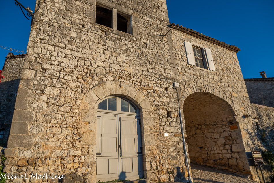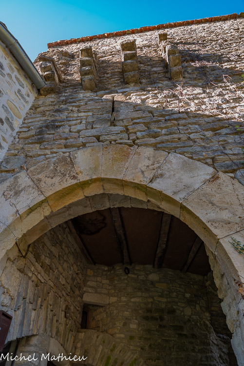 Le portail d'été. C’est l’entrée sud du village (d’où le nom de Portail d’été). On distingue encore dans la muraille le canal de fuite dans lequel on glissait une longue pièce de bois, l’épar, lorsque la porte était ouverte et qui, la nuit venue, fermait les battants.