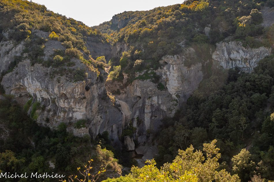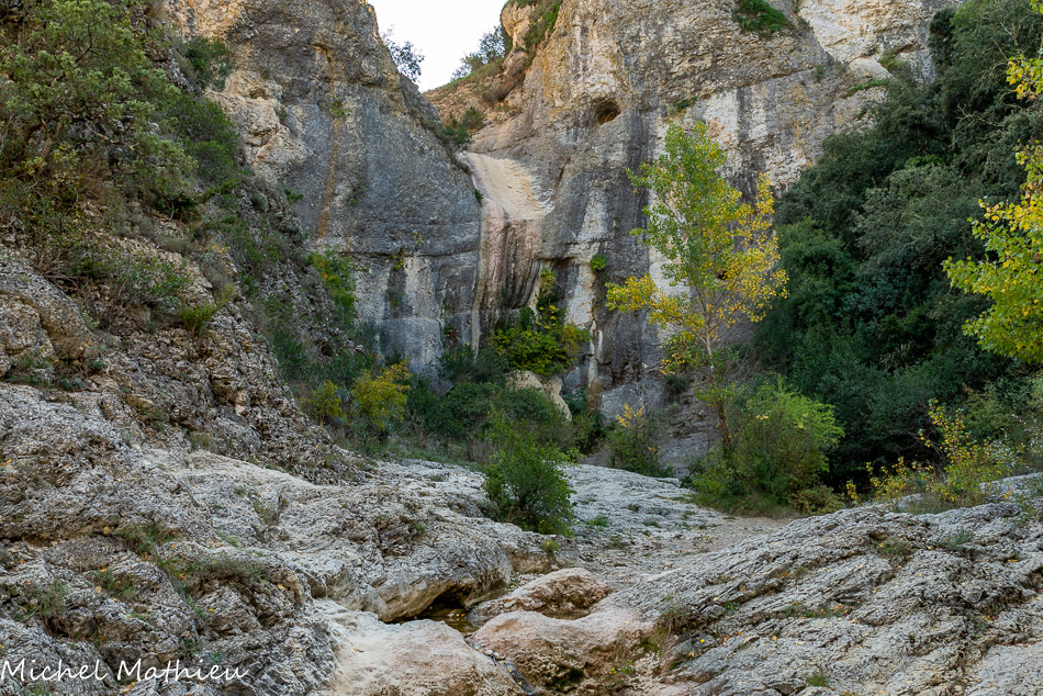Le calcaire étant une roche souvent très fissurée, l’eau y pénètre facilement. Si un gel fort survient, l’eau augmente de volume et fait éclater les roches en de multiples débris anguleux qui s’accumulent sur les pentes. Des cavités dans les calcaires sont les témoins de l’érosion karstique. Eelles se sont formées dans la partie supérieure de la falaise lorsque le massif était parcouru de petits cours d'eau souterrains. Au-dessus de la cascade, le Vendoule passe dans de petites gorges remarquables.