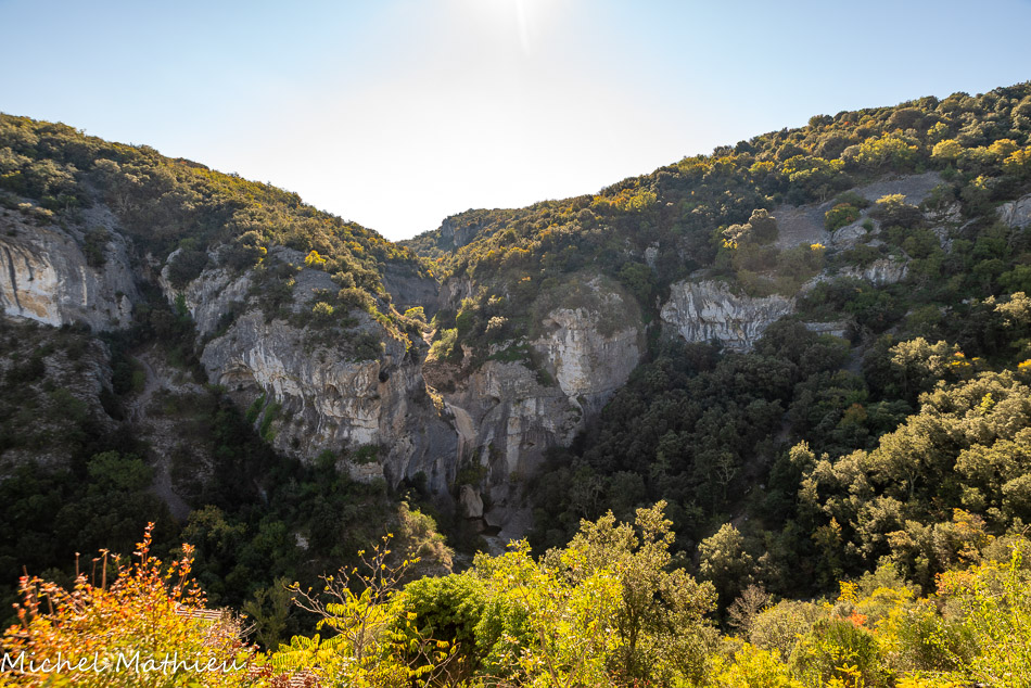 La Cascade de Rochecolombe, c’est une chute d’eau naturelle qui a la particularité de ne pas couler toute l’année. Il faut donc s’armer de patience pour voir la cascade active… et attendre les épisodes pluvieux. C’est le lendemain d’une très forte pluie qu’elle est la plus spectaculaire et puissante. L’eau, turquoise et limpide, jaillit du haut de la falaise et vient s’écraser sur un énorme rocher au pied de la falaise, avant de se faufiler, puissante et bruyante, dans les petites vasques naturelles formées par l’érosion.