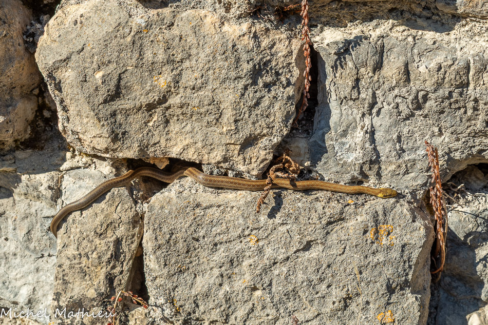 On distingue encore les marques des barres à mine utilisées pour faire sauter le rocher.