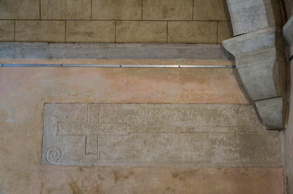 Le tombeau situé dans le mur du cloître correspond à la sépulture du fondateur de la Chartreuse de Valbonne Guilhem de Vénéjan. On retrouve sur la pierre gravée, la croix hampée et la crosse tournée vers l'intérieur, symbole d'un évêque dont les fonctions sont internes.