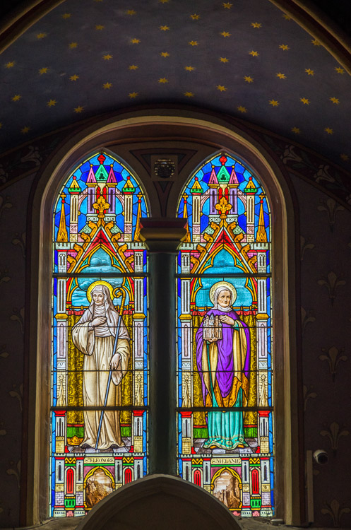 Aiguèze Dans les chapelles, Ste Mélanie, à droite, a les traits de sa sœur, Ste Eléonore, à gauche, ceux de sa mère.