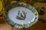 Le cabinet de porcelaines. Service de table dit service Buffon en porcelaine tendre de Sèvres, 1784et 1786. Décor d’oiseaux et sur l’aile d’oeils de perdrix vert et or avec dans les réserves des oiseaux et des camés. Au revers le nom des oiseaux.