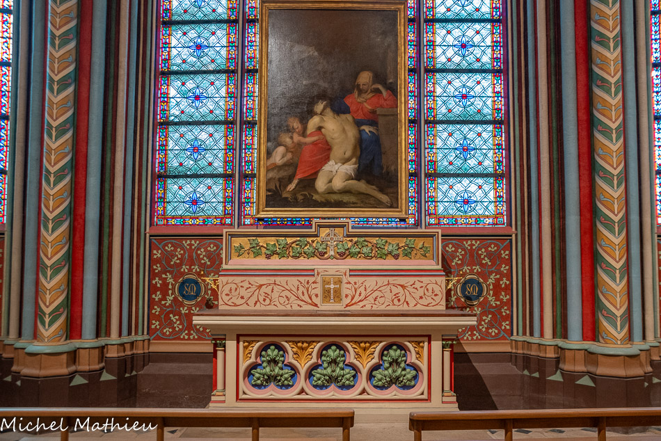 A droite, Saint Jean-Baptiste, Saint-Etienne, Sainte Geneviève et le Pape Saint Sylvestre. Saint Denis et Sainte Geneviève sont avec Saint Marcel les saints patrons de Paris.