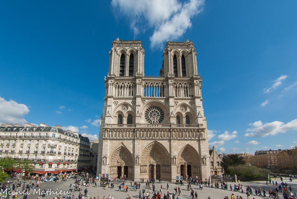 La façade a été commencée sous l’épiscopat d’Eudes de Sully à partir de 1200 par le troisième architecte et poursuivie sous ses successeurs, notamment Guillaume d’Auvergne, après 1220 par le quatrième. La tour Nord est achevée en 1240 et celle du Sud en 1250.
