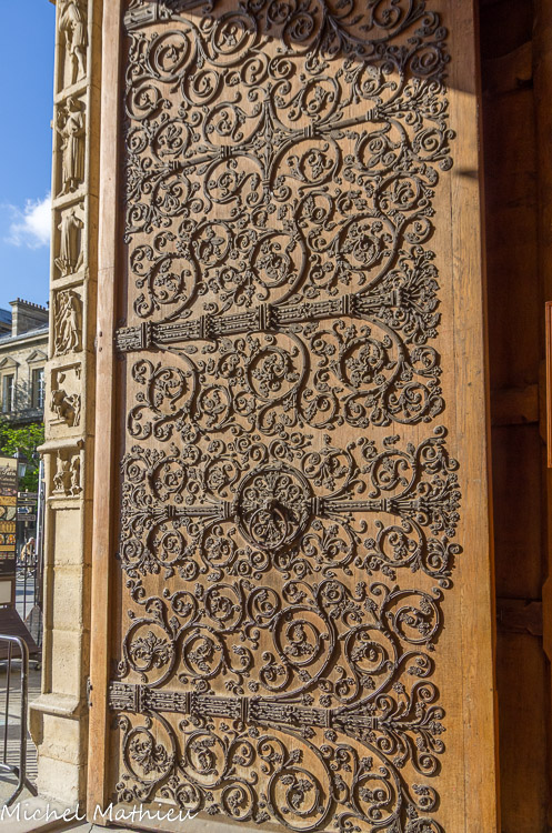 Le Christ est placé entre les deux portes sur un pilier central que l’on appelle le trumeau. C'est une des œuvres les plus remarquables d’Adolphe-Victor Geoffroy-Dechaume. À l’arrière, sur les portes, les pentures et leurs arabesques, sont une fort belle restitution du XIXe siècle.