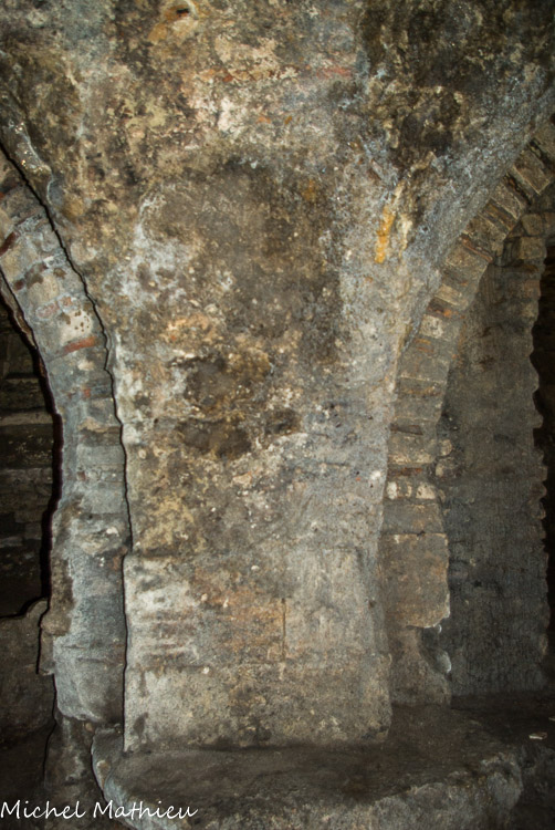 Ces éléments ont été trouvés dans la galerie, dont les voûtes ont été parfois percées pour faire des citernes, notamment aux deux angles.
