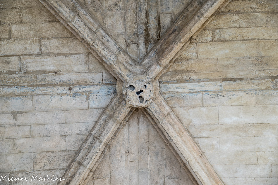 Les travées sont séparées par de robustes piliers qui reçoivent la retombée du doubleau, du coté extérieur sur un pilier et sur le coté intérieur sur une console.
