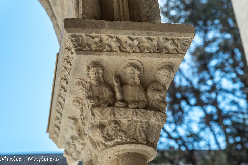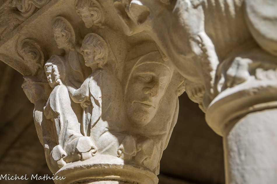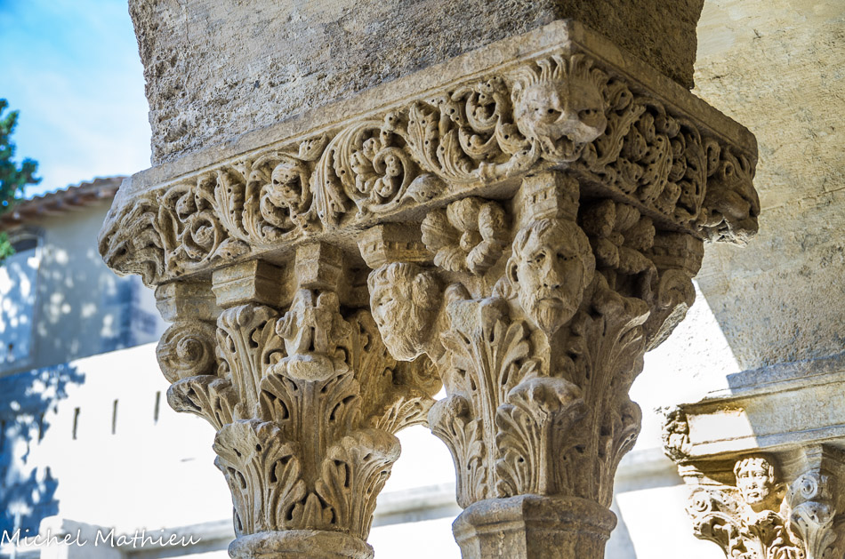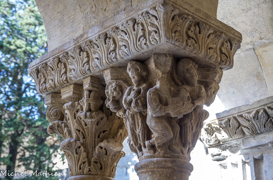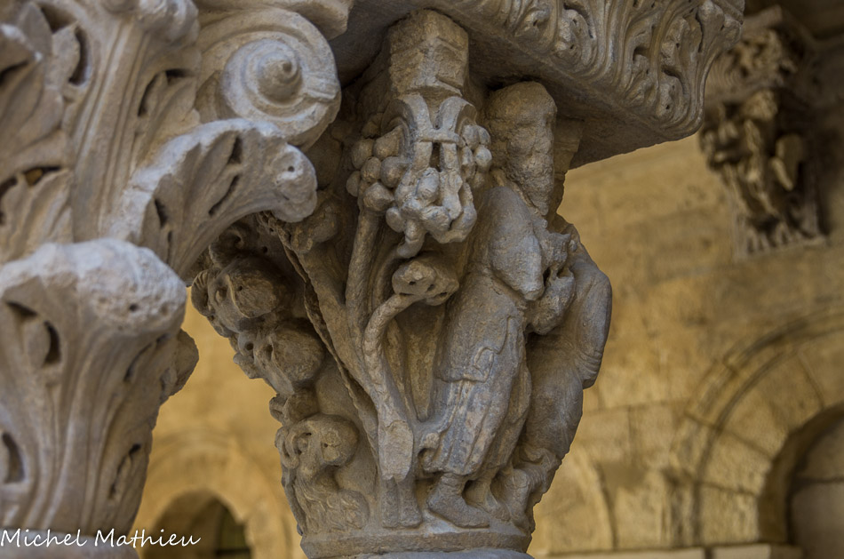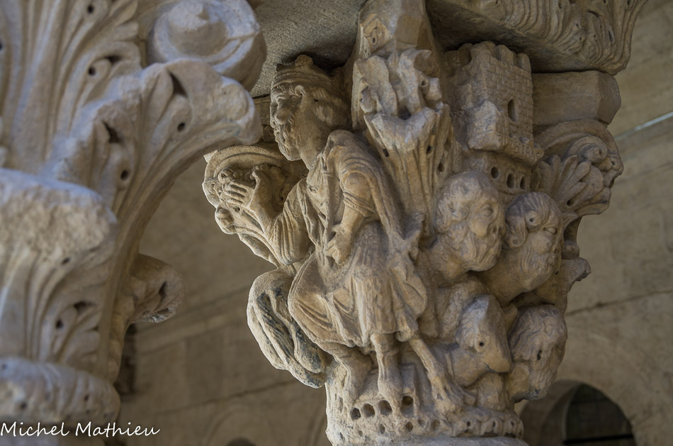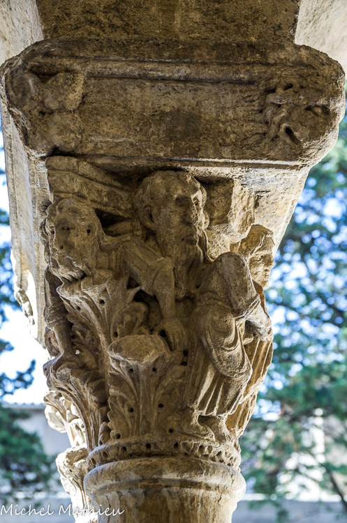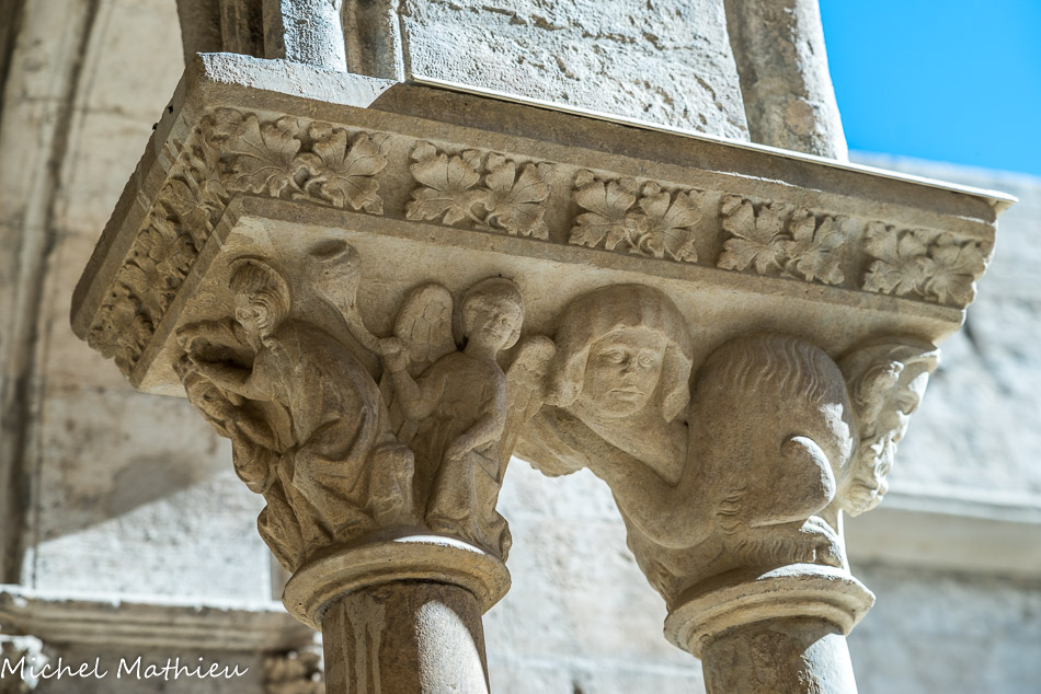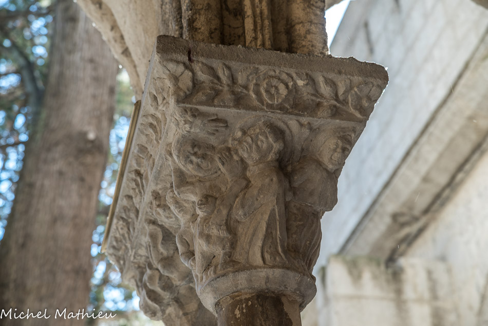 Galerie Ouest. Les faces extérieures des chapiteaux, rarement historiés en général, sont, comme celui-ci, à feuillage.