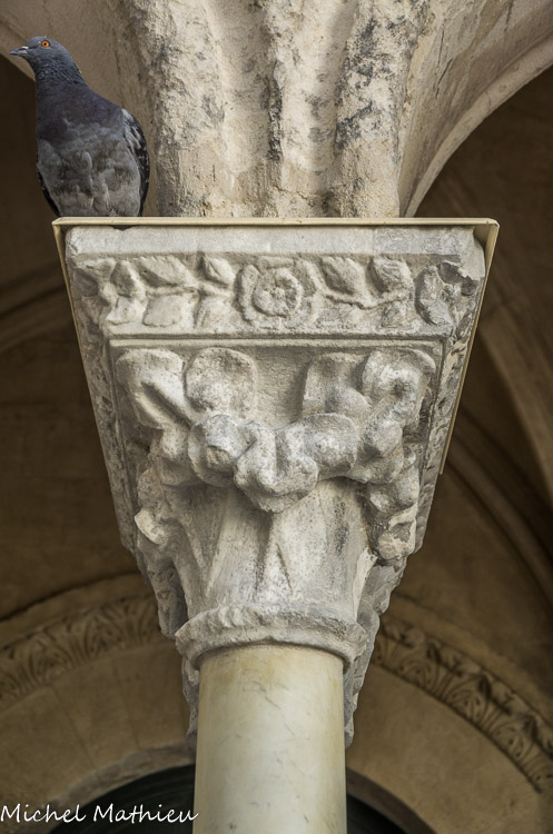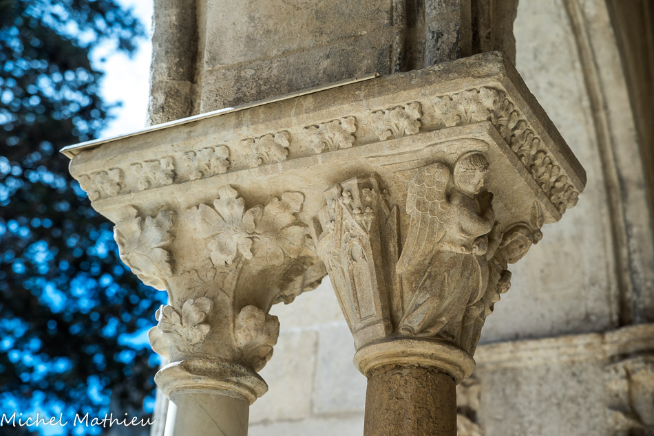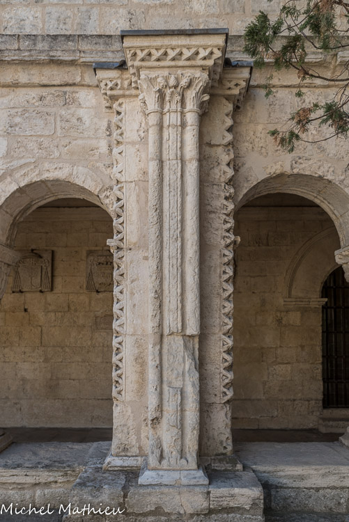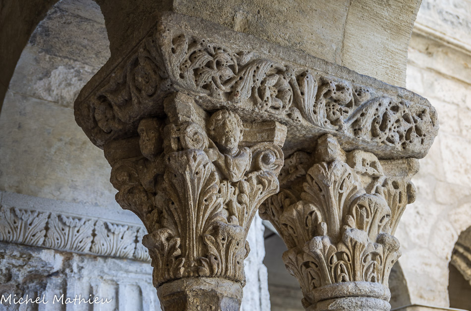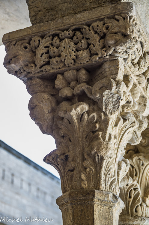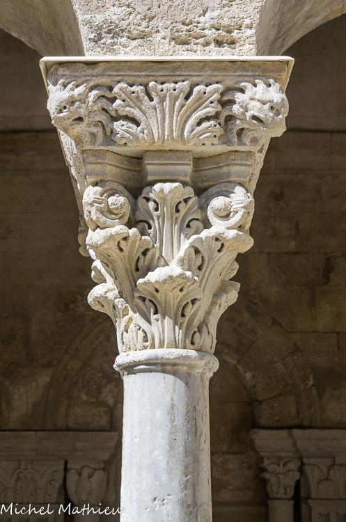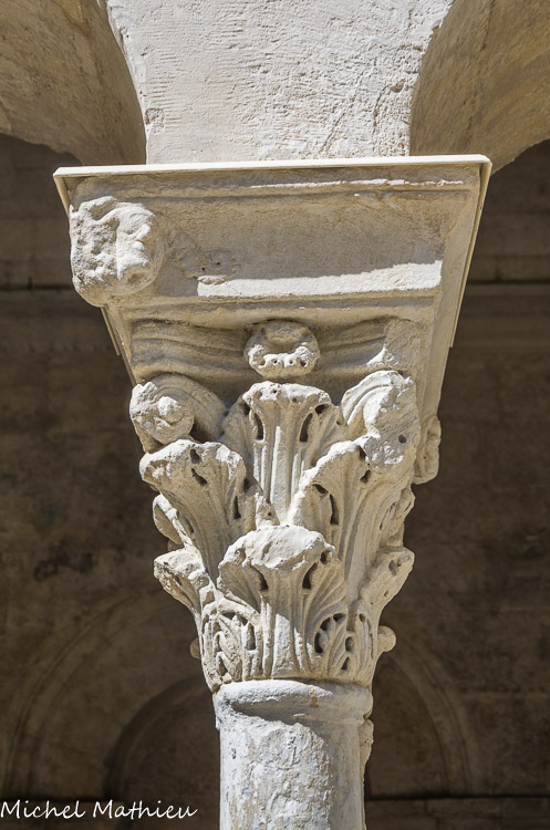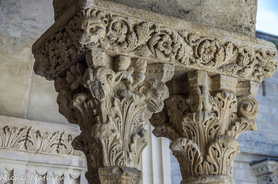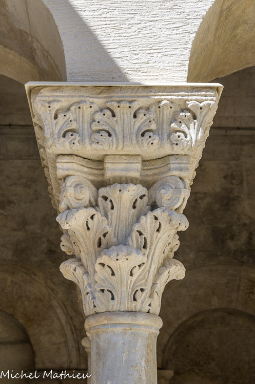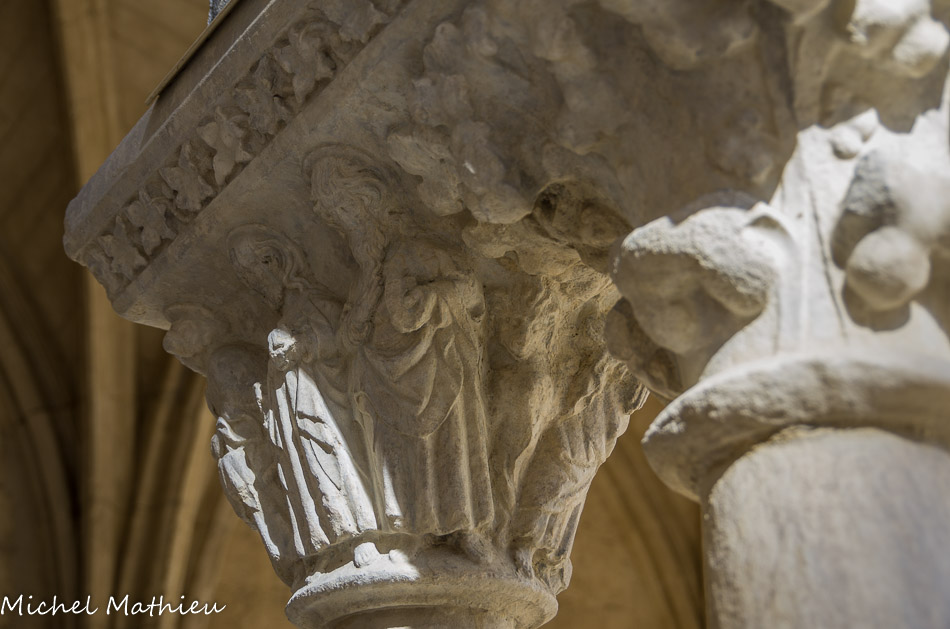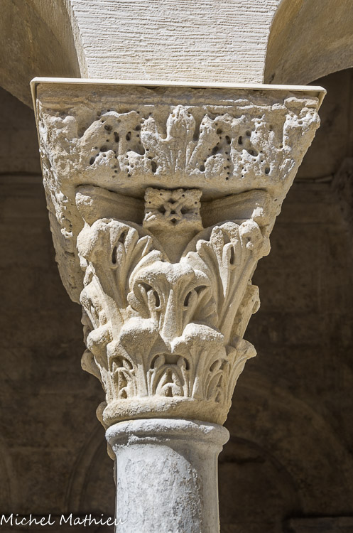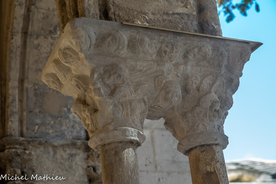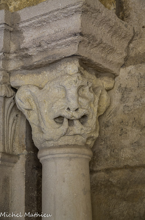 Galerie Sud. Colonnettes gothiques portant un chapiteau double taillés dans un même bloc.