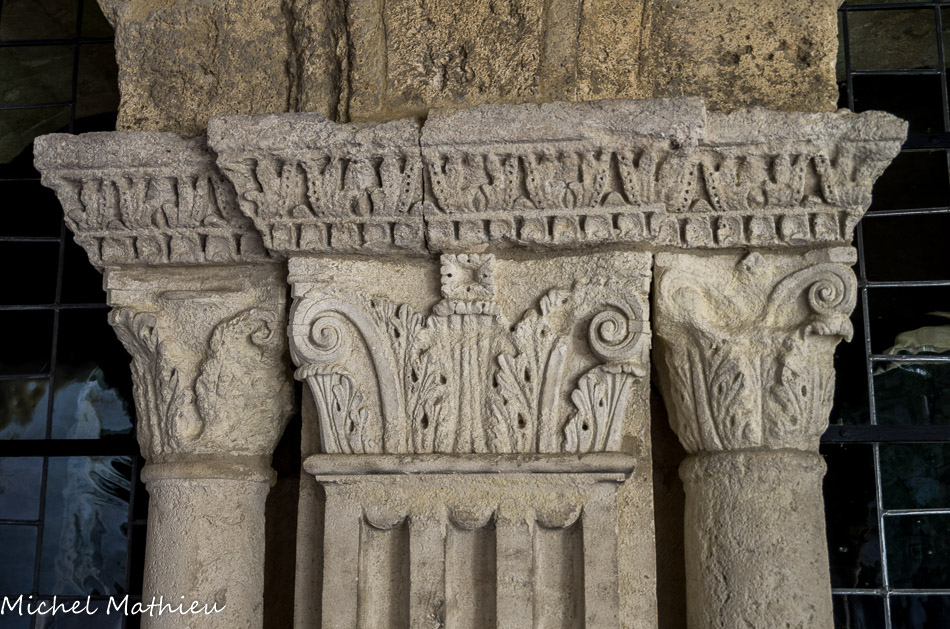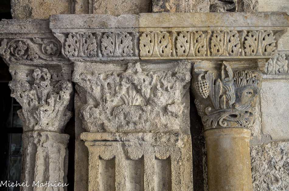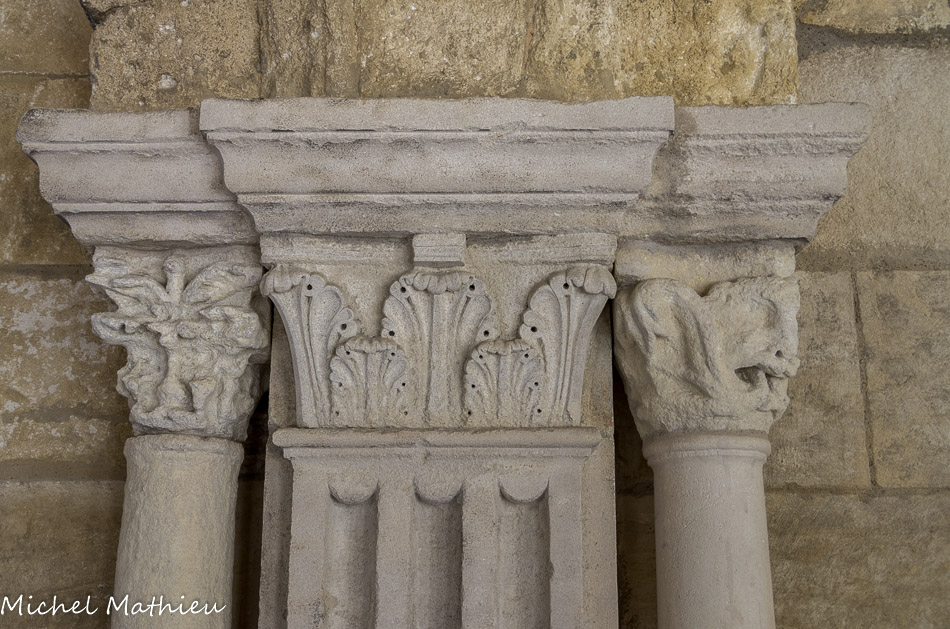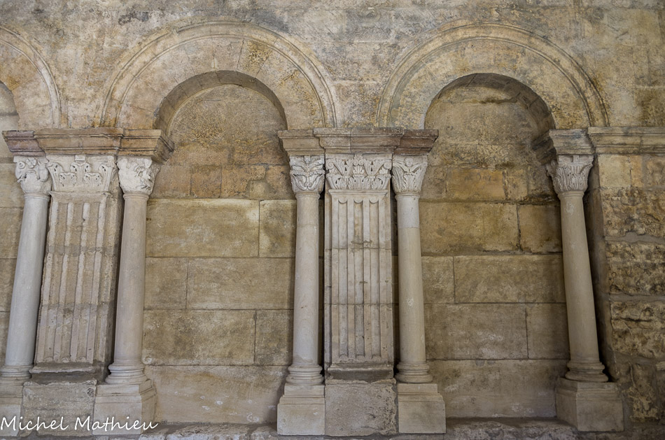 Galerie romane Nord. Les deux colonnettes sont cylindriques, bases à deux tores inégaux.
