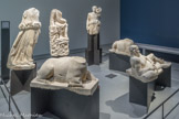 Statue fontaine de Neptune. Cette statue, datée du IIe s. ap. J.-C. représente Neptune selon le type du Latran, réinterprétation d'un prototype de Lysippe, célèbre sculpteur grec du IVe s. av. J.-C. Réalisée dans un calcaire local elle est de facture régionale. Le travail de sculpture est soigné. Dans la main gauche, il faut restituer la hampe d'un trident. Par rapport au modèle, le sculpteur a réduit la profondeur en redressant le torse pour l'insérer dans une niche étroite. La jambe droite repose sur un appui en forme de navire de guerre. Un jet d'eau sortait de l'orifice percé dans le navire et tombait dans un bassin en contre-bas. Le manteau et le socle étaient peints (traces de rouge et de bleu).