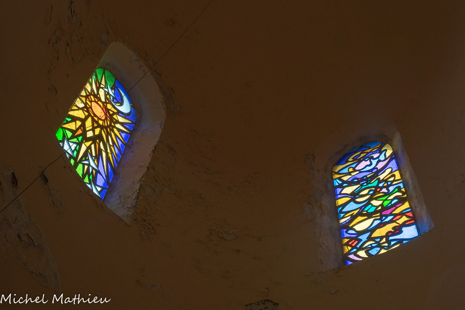 Elle comporte 4 vitraux pour les fenêtres du lanternon. Ils racontent la création selon la thématique franciscaine.