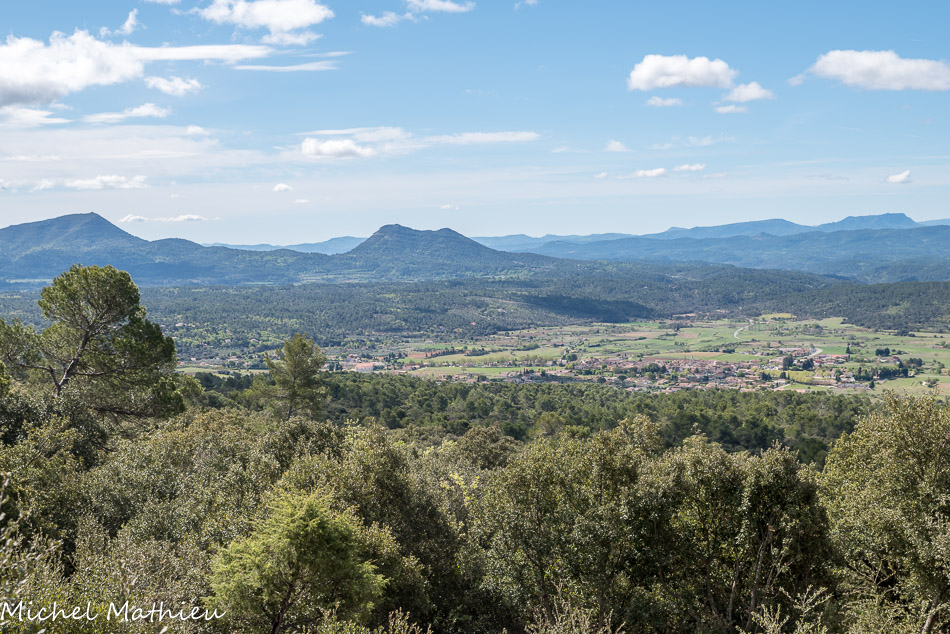 A gauche, le petit Bessillon. Dans la plaine, le village de Tavernes
