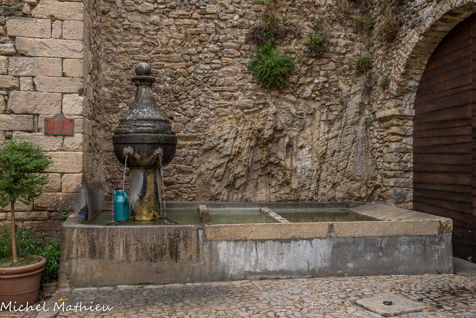 Fontaine place du Beffroi datée de 1841 qui se trouvait au centre de la place, et qui fut déplacée en 1905 dans un angle. Nous sommes dans une région de climat méditerranéen à longue saison estivale.