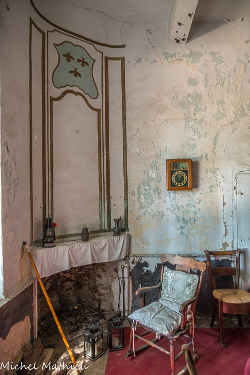 La cheminée avec les armoiries de la famille Abeille.
