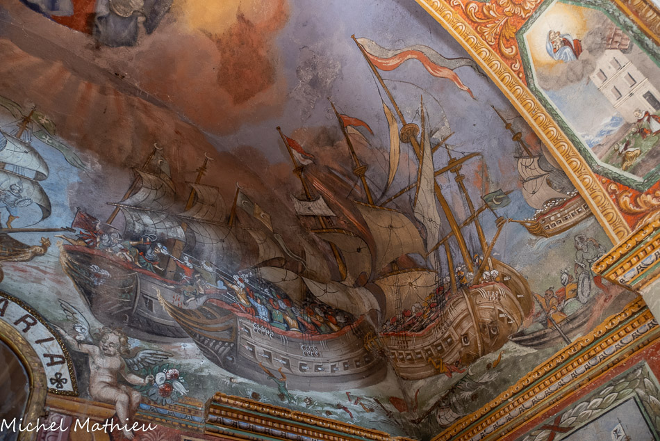Chapelle des Trinitaires Chapelle Notre Dame de la Conception. Fresques de la vie de la Vierge : à gauche, présentation au temple, au centre, sa naissance, à droite son baptême.