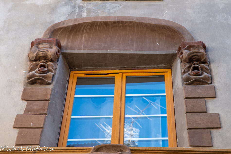 Saint-Etienne-de-Tinée. Maison Laugier. Les masques grimaçants. Eette maison était occupée par les soeursTertiaires de Sainte-Thérèse. Ces religieuses quittèrent Saint-Étienne à la fin du 18e pendant la révolution pour s'installer à Sospel.