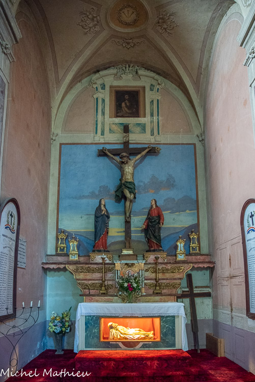 Chapelle des Trinitaires L'édifice baroque montagnard à nef unique est flanqué de 2 fois 2 chapelles latérales, avec travée rythmique intermédiaire.
