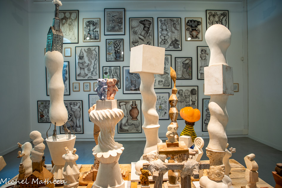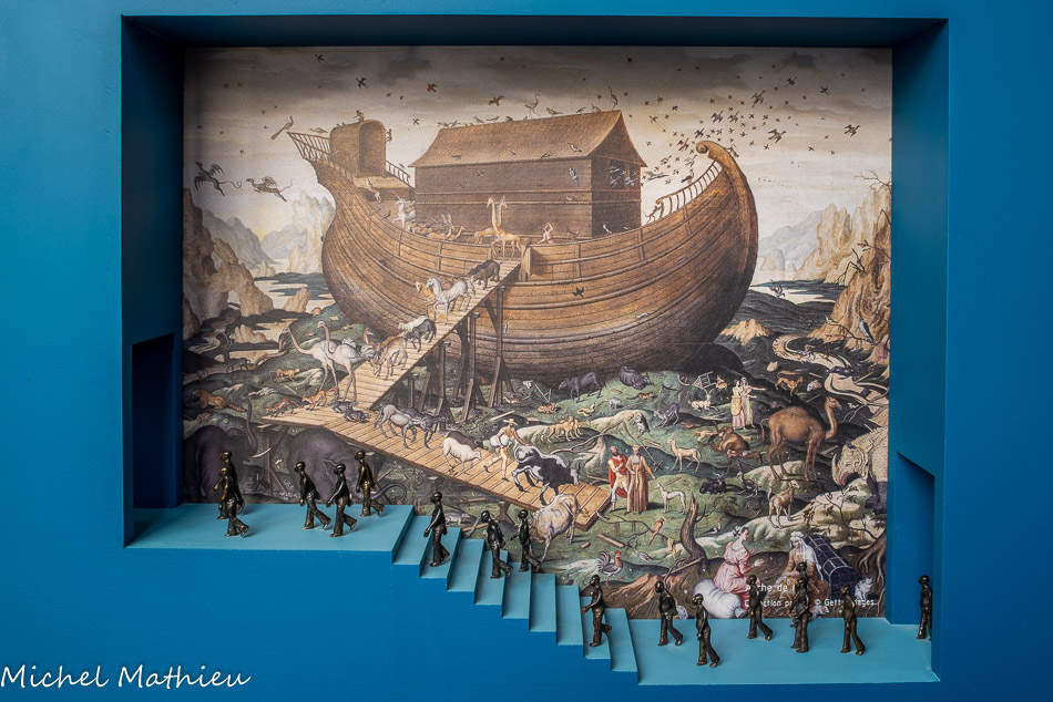 Une installation contemporaine de Michka Anceau guide le visiteur à l'orée de l'exposition, faite de petites figurines en bronze, se dirigeant toutes dans la même direction.