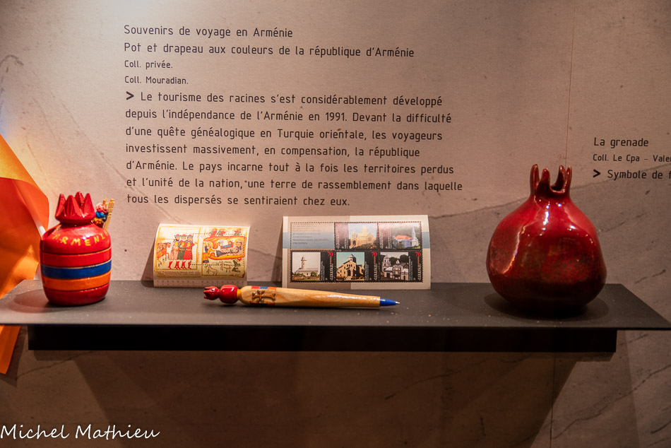 Les Arméniens rescapés du génocide ont dû quitter la Turquie en laissant leurs biens. Ils ont été contraints d'abandonner leur foyer, les objets et les paysages de leur quotidien, ainsi que les traces historiques de leur présence sur le territoire. Face à cette absence, ils se sont reconstruits en portant en eux le souvenir de leurs terres perdues, d'une «Arménie» rêvée. De nombreux objets témoignent de leur attachement à leurs origines.