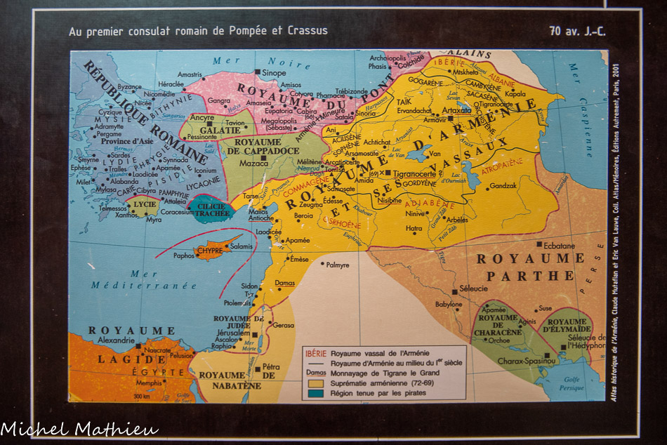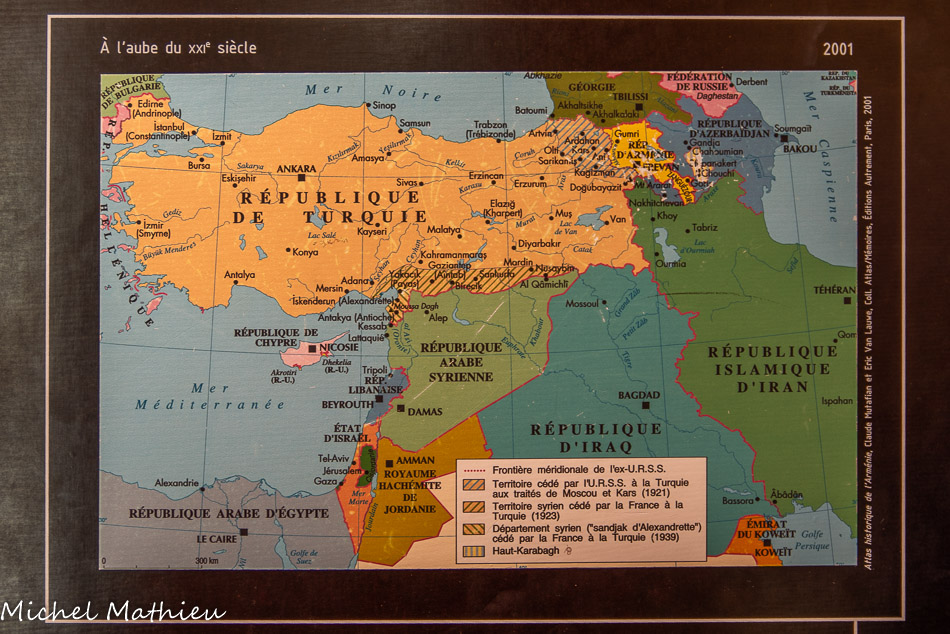 Le territoire de l'Arménie historique est situé entre l'Asie et l’Europe, sur les voies d'invasion et de commerce. Il a servi de champ de bataille aux grands empires qui s'y sont succédé. Entre le IXe et le XIe siècle, les royaumes de Grande Arménie se développent autour de Van et d'Ani, puis jusqu'au XIVe siècle, le royaume de Cilicie prend forme. A sa chute, les Arméniens sont partagés entre l'Empire ottoman et la Perse. Certains émigrent dans les Balkans, en Crimée, en Pologne ou plus loin encore en Europe occidentale.