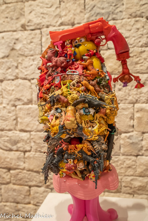 Exposition de Thibault FRANC (1976). Metropolis, 2011-2016. Assemblage, jouets plastiques, objets en bois, guéridon Collection de l'artiste.