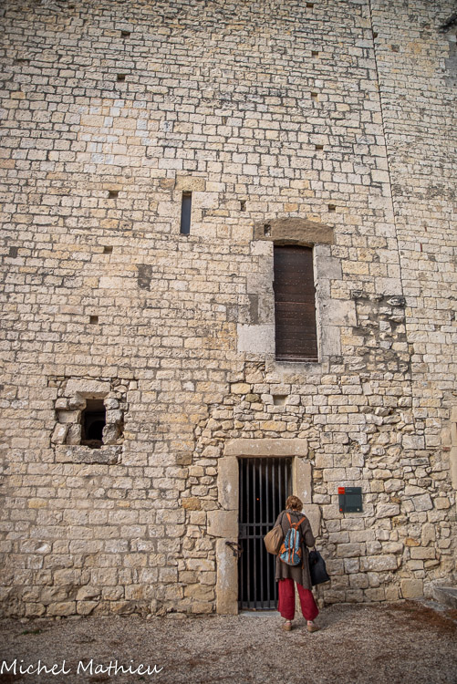 Vue du chemin de ronde. La tour carrée de l’enceinte. XIIIe siècle. Donjon, 14ème siècle. Un escalier à vis hors œuvre dessert les trois niveaux de la tour maîtresse et le chemin de ronde.
