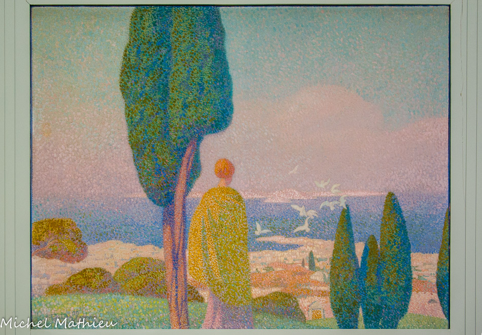 Bureau du président. Marseille antique, située au-dessus de la porte d'entrée. Une jeune femme, que l’on a identifiée comme Gyptis, drapée d'une toge est placée de dos, regarde la baie de Marseille à l'aube de son histoire. David Dellepiane, dans cette œuvre s'est inspiré d'une statuette de Tanagra.