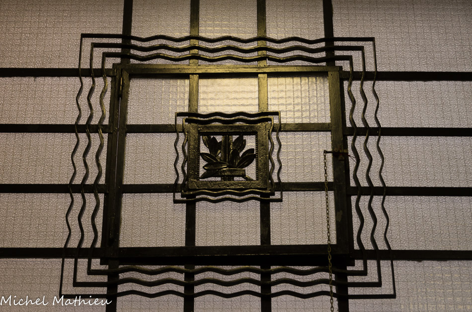 Ferronnerie de la verrière représentant des feuilles de chêne.