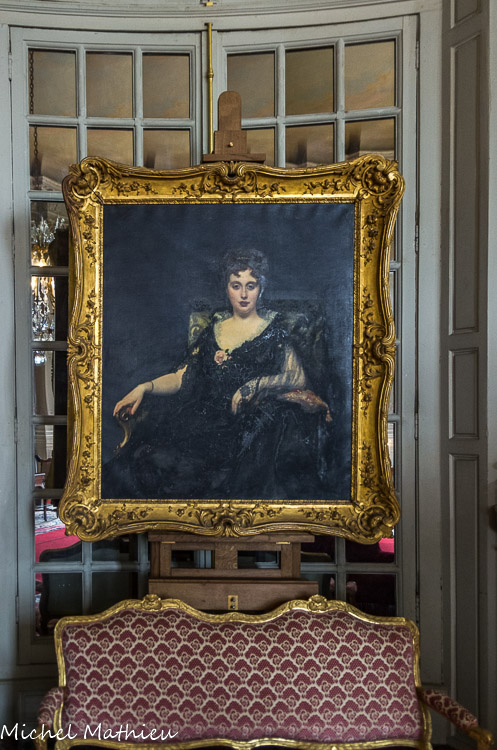 Salon de musique. Les portraits de Louise et Louis Cahen d’Anvers furent commandés à deux peintres de la Belle Epoque, Charles Carolus-Duran pour Louise et Léon Bonnat pour Louis. Ces portraits sont très conventionnels contrairement aux portraits de leurs filles peintes, sur le conseil d’un ami, par Auguste Renoir vers 1880. Mais les tableaux impressionnistes très célèbres ne furent pas appréciés par la famille. Les dessus de porte sont des natures mortes du XVIIIe siècle.