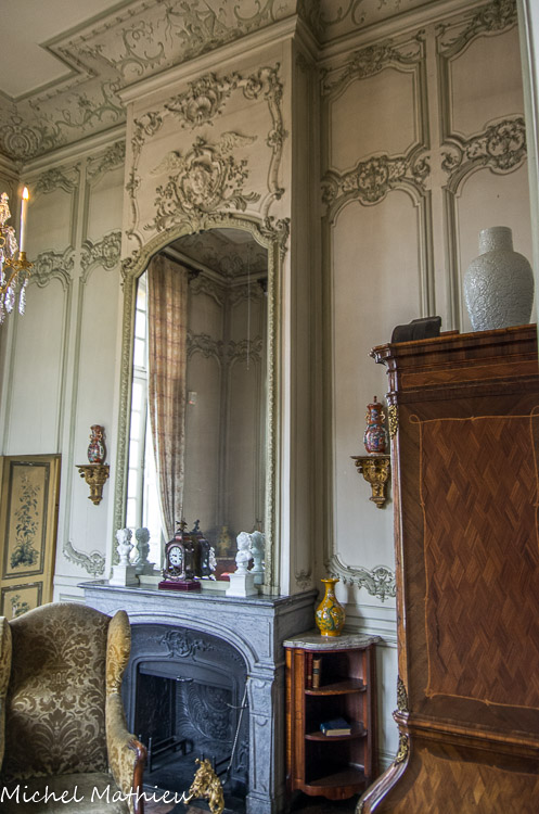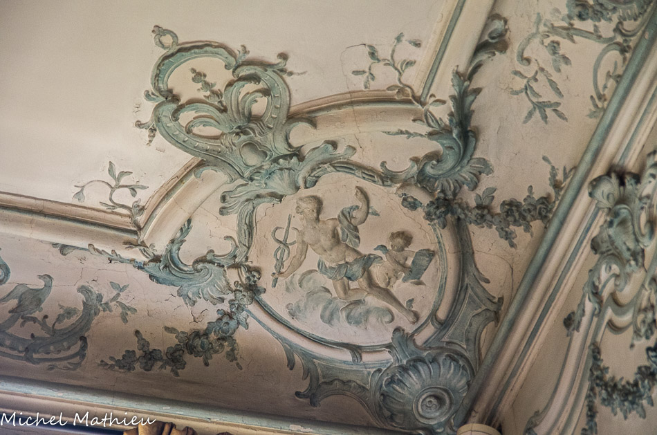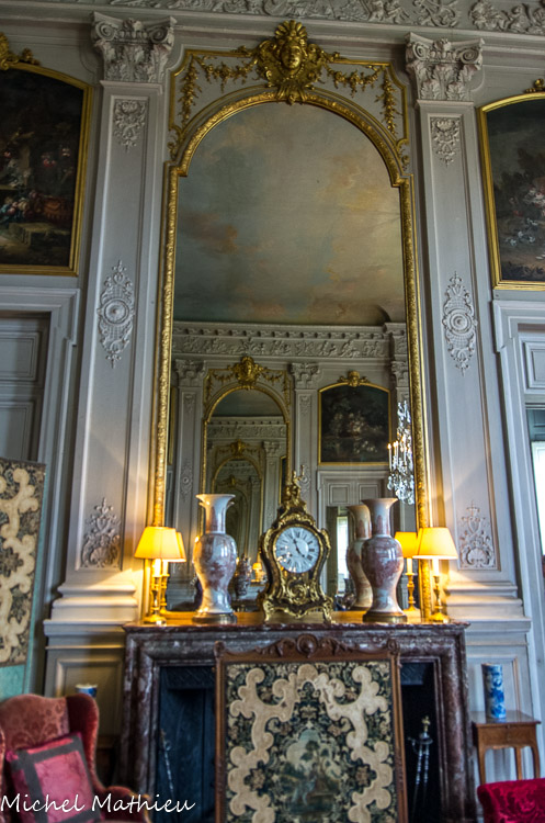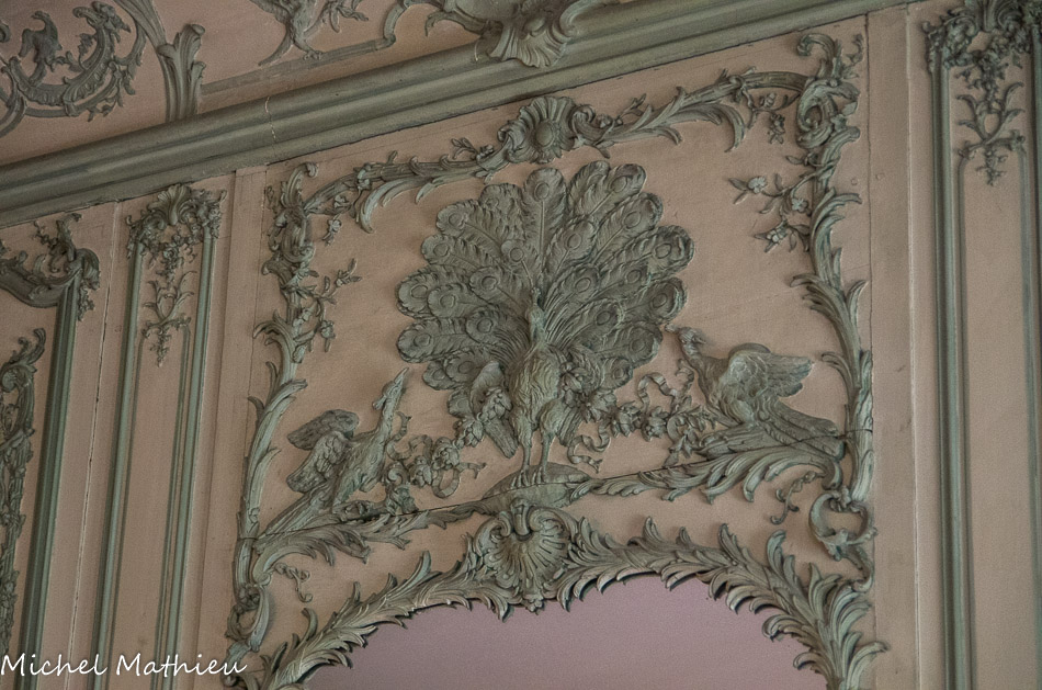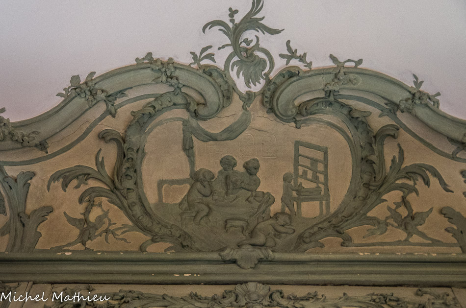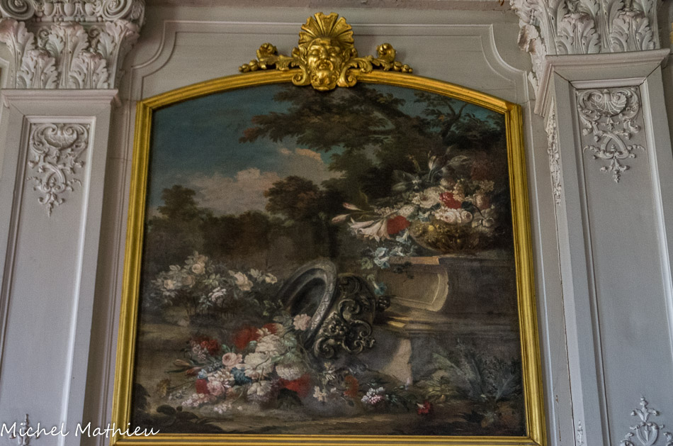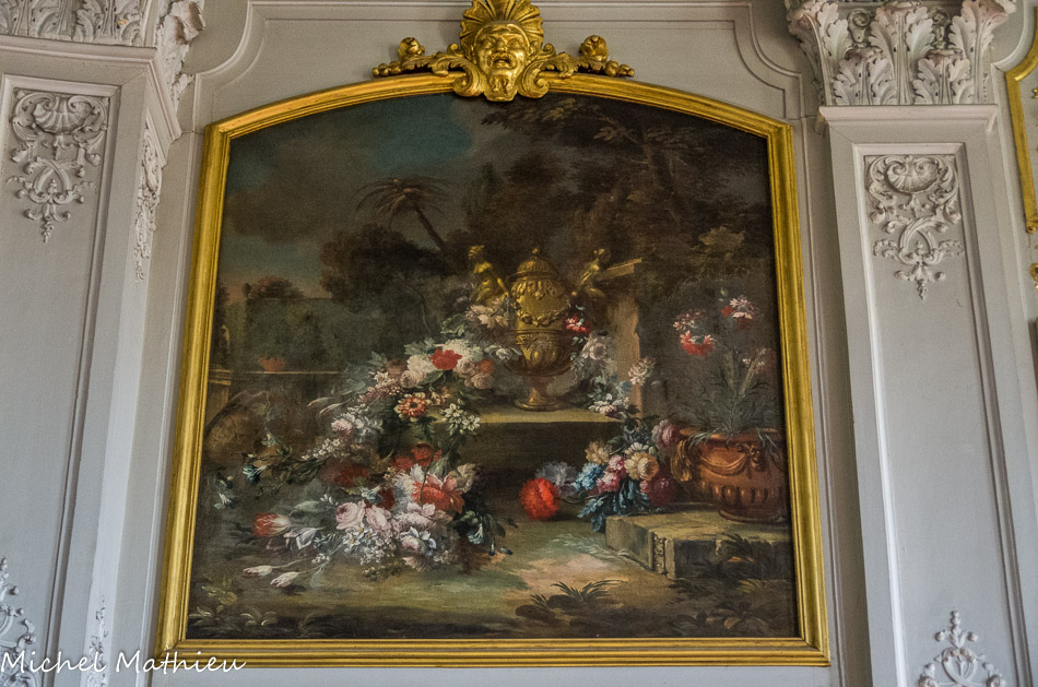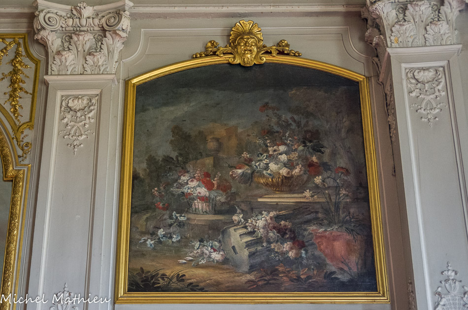Salon de musique. Les dessus de porte sont des natures mortes du XVIIIe siècle.