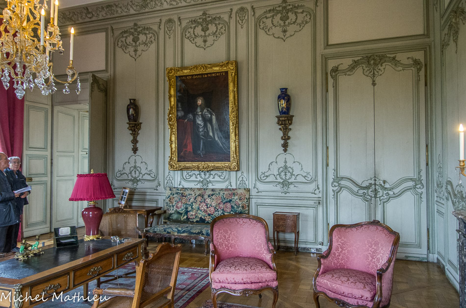 Salon d'angle transformé en bureau. Un tableau de Louis XIV durant sa minorité est attribué à Jean Nocret (1617-1672).