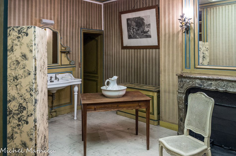 Salle de bain de la chambre d'honneur. Cette salle de bains fut aménagée par les Cahen d’Anvers dans une chambre de domestique.