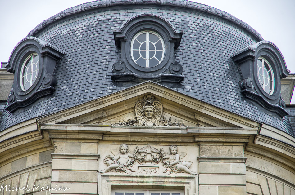 En 1832, Jacques Maurice Grosjean « écrête » les combles et les remplace par un toit en terrasse à l'italienne bordée d'une balustrade d'un effet assez malheureux, mais les combles à la Mansart d'origine sont restitués à partir de 1895-1896 pour les Cahen d'Anvers par l'architecte Walter-André Destailleur, qui travaille à partir des sept planches gravées publiées par Mariette, non sans modifier légèrement le profil de la toiture de la rotonde.