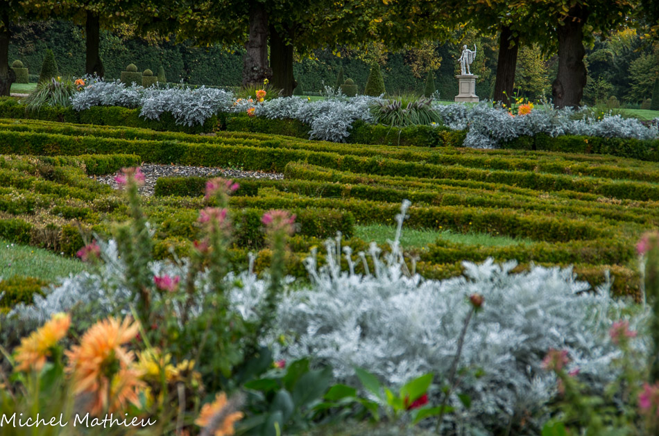 De chaque côté se trouvent le parterre d'Apollon , Dieu des arts et de la lumière, copie de « l’Apollon du Belvédère » du Vatican