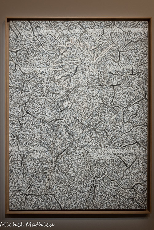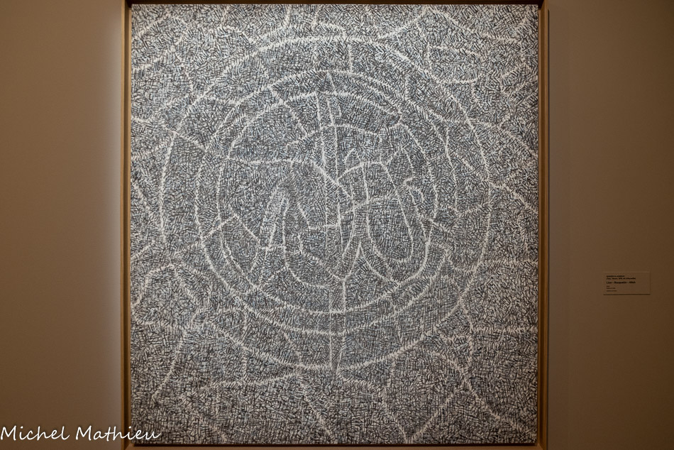 L'écriture comme signe constitue la recherche principale de Nasser Al-Aswadi, qui s'inscrit dans la continuation inventive de la tradition calligraphique. Ses œuvres aux formes abstraites sont dessinées par un tissage libre et savant de mots arabes, manuscrits et répétés des milliers de fois, semblables à des nuées. Son travail récent s’est enrichi de formes et de symboles, puisés dans les périodes anciennes des cultures du Yémen, comme l’alphabet sud arabique, 1a huppe ou le bouquetin
