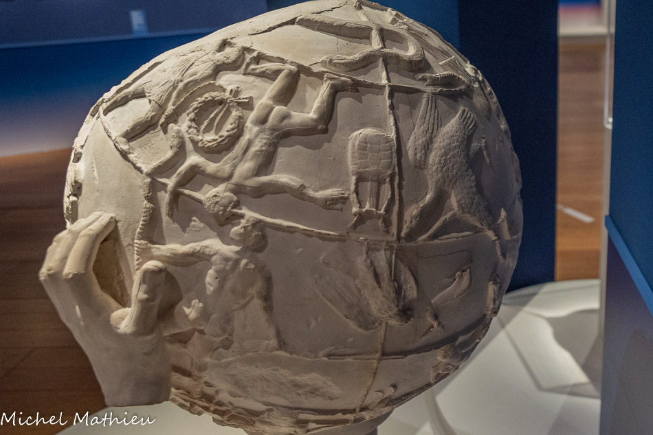 Musée d'archéologie méditerranéenne, Marseille. En Égypte, la course du Soleil est imaginée dans une barque qui parcourt le ciel.