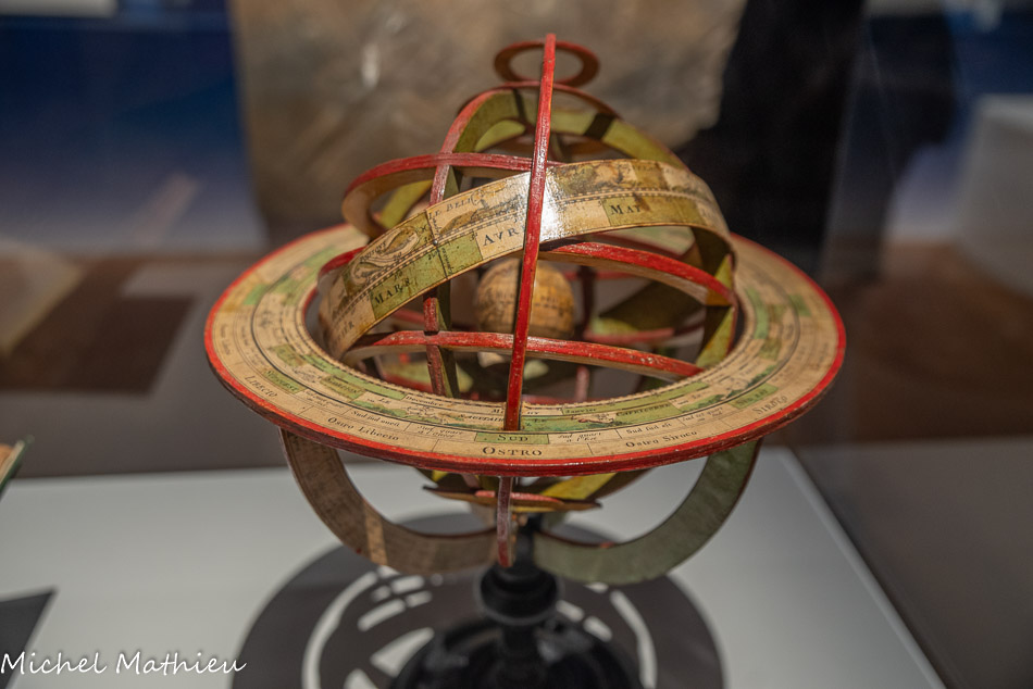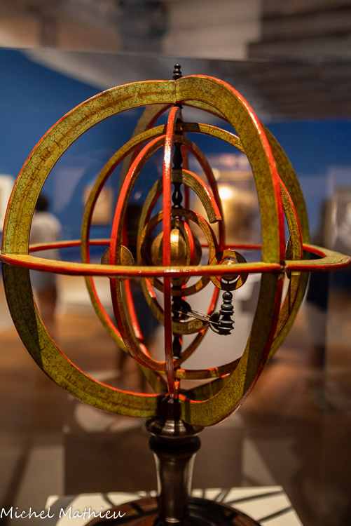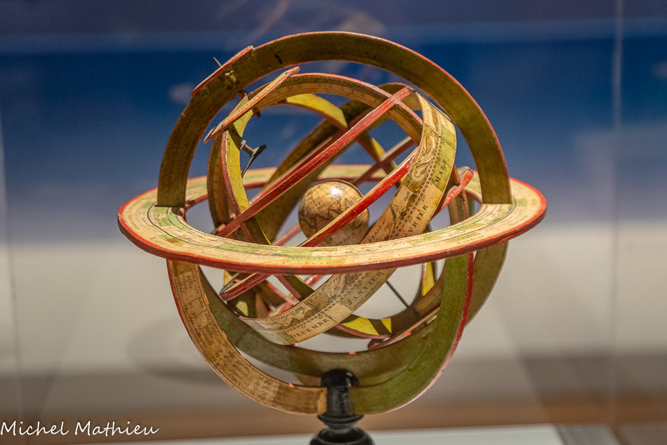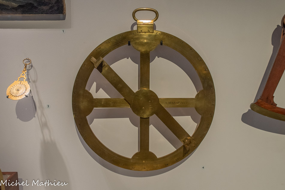 Laiton acajou et bois. Musée national de la Marine, Paris. L'octant et l’astrolabe donnent la hauteur des astres.