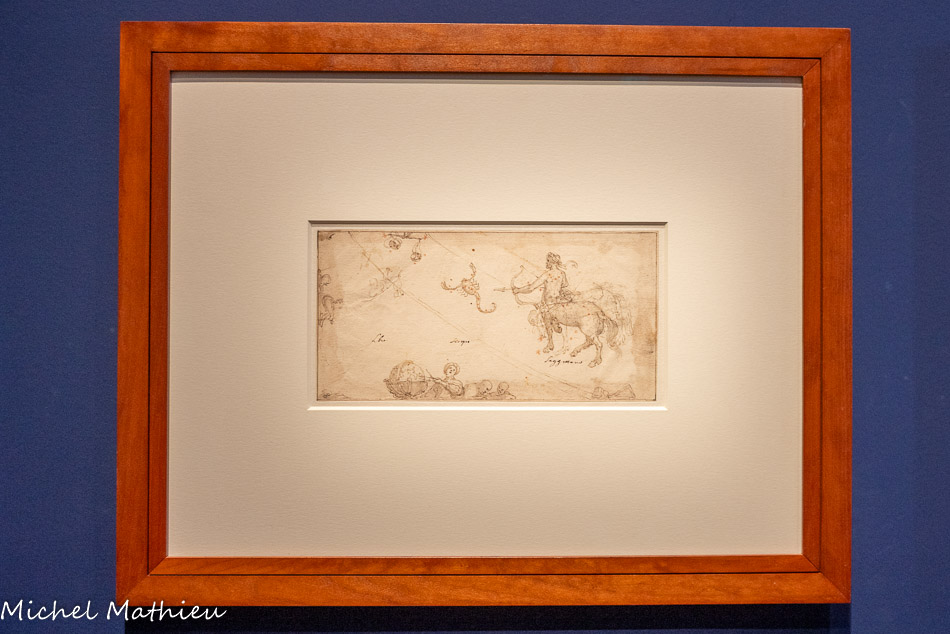 Uranie, muse de l'astronomie dans la mythologie gréco-romaine, pointe un globe céleste indiquant une configuration précise des astres. Signe de présage sur Terre, la position des étoiles est ici peut-être reliée à la fondation mythique de Rome.