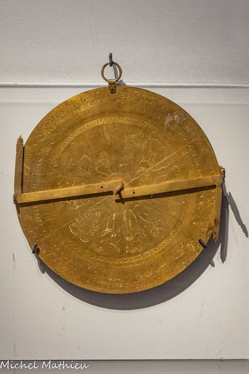 Musée des Arts Précieux Paul-Dupuy de la Ville de Toulouse. L'astrolabe, en grec ancien le « preneur d’étoiles », est un outil d'observation et de calcul permettant de déterminer l’heure et de s'orienter grâce â la voûte céleste. Celui-ci peut fonctionner à des latitudes variées selon le cadran employé, chacun étant spécifique à une grande ville du bassin méditerranéen : Marrakech, Séville, La Mecque, Le Caire et Jérusalem notamment.